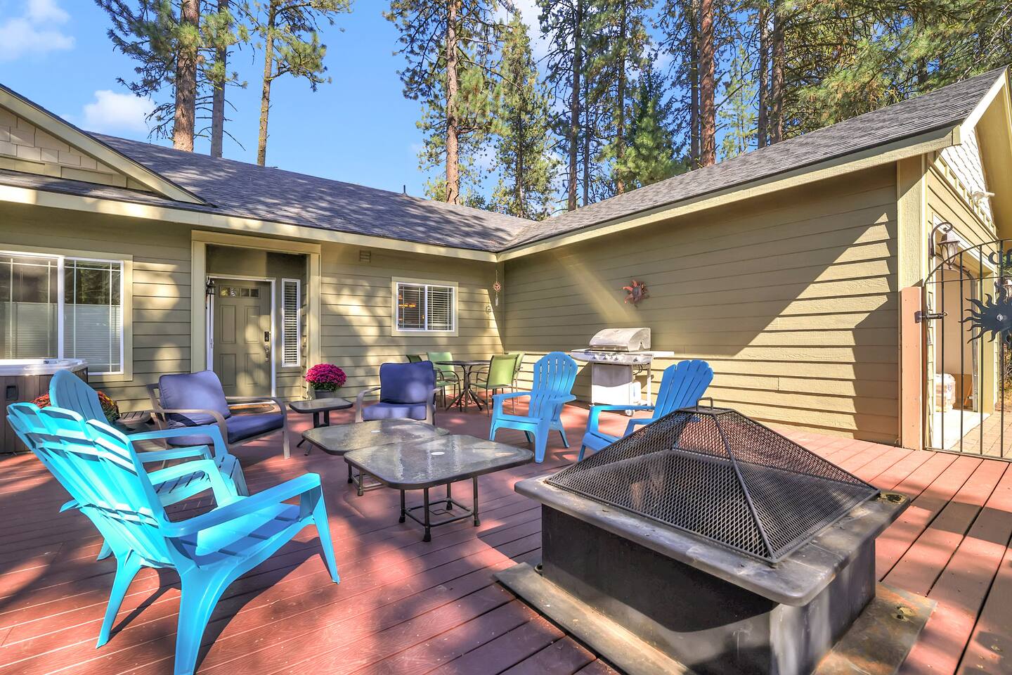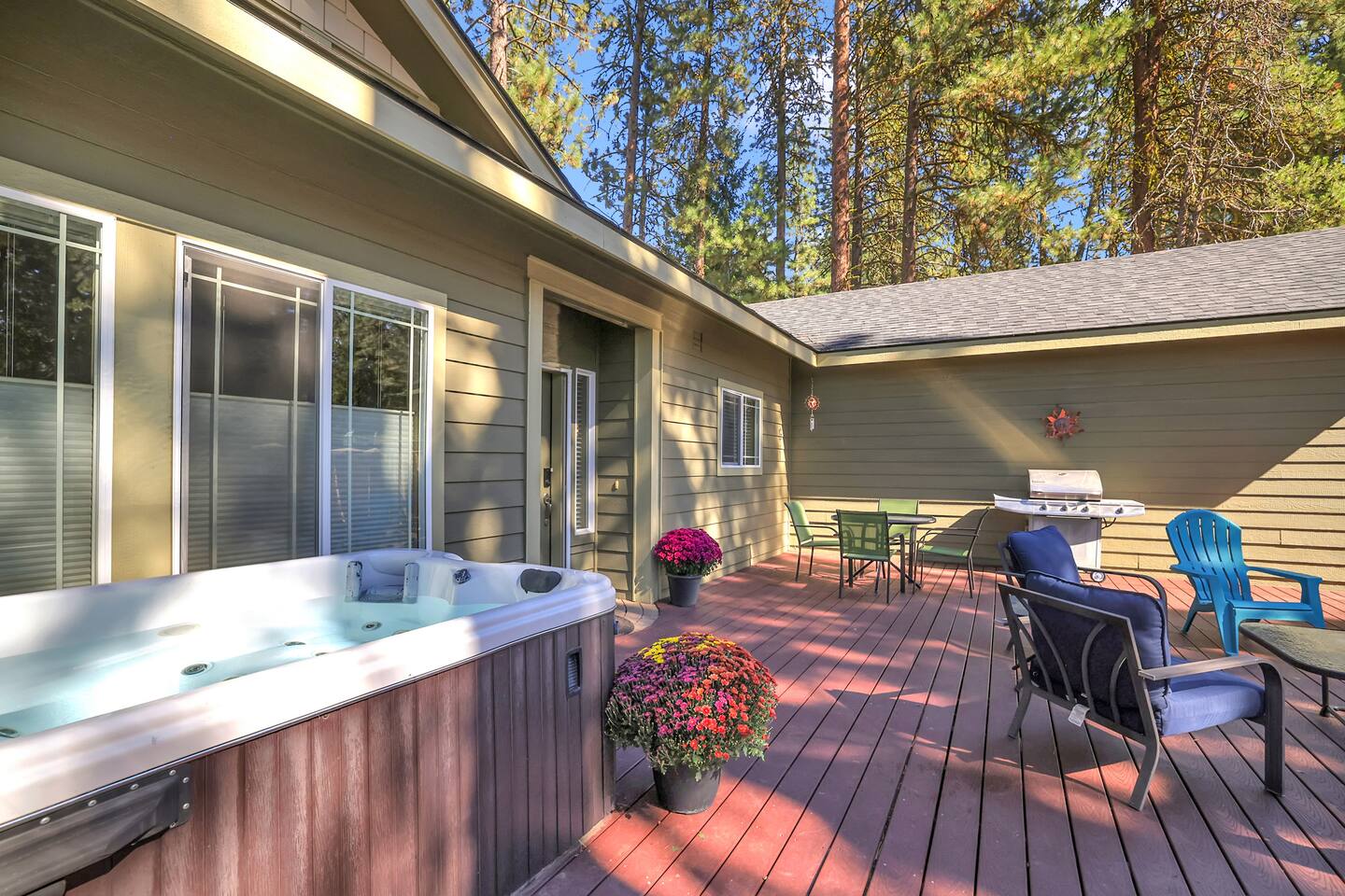 Enjoy your morning coffee or evening glass of wine on the spacious deck, complete with outdoor seating, BBQ grill, and a private hot tub. The fenced yard and backdrop of towering evergreens create a peaceful, private setting — ideal for calm gatherings and stargazing under the McCall sky.