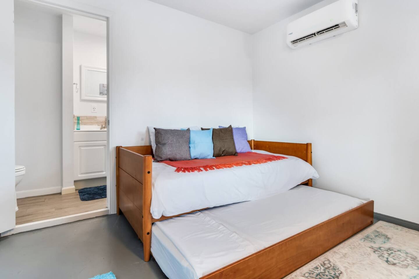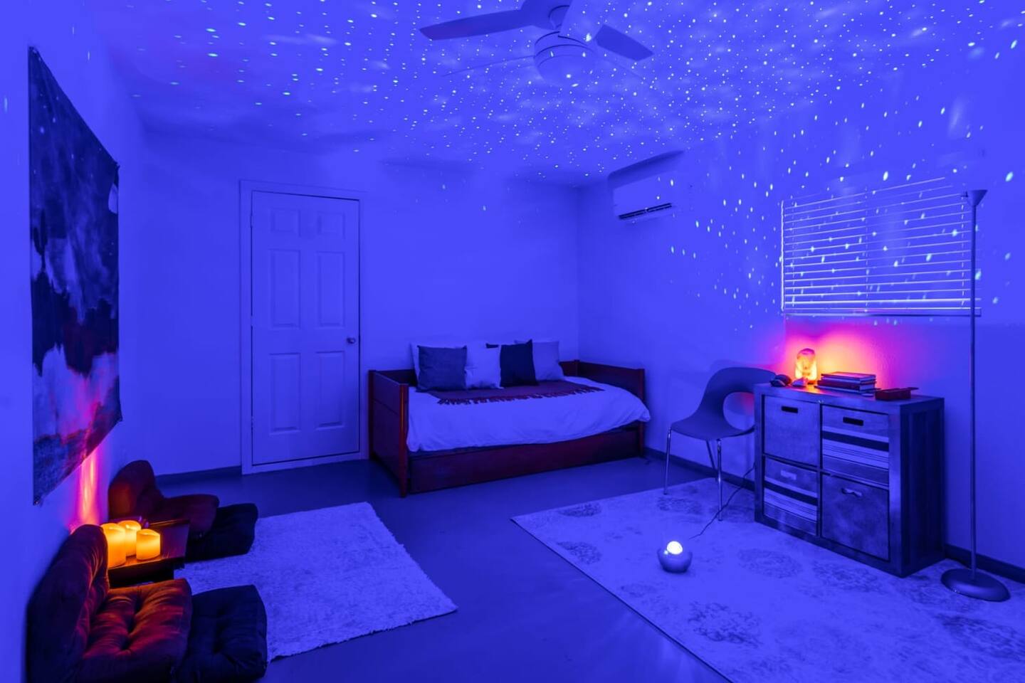 Zen Room — Trundle bed with 2 separate twin mattresses with an en-suite bathroom. Includes starry galaxy mood lighting!