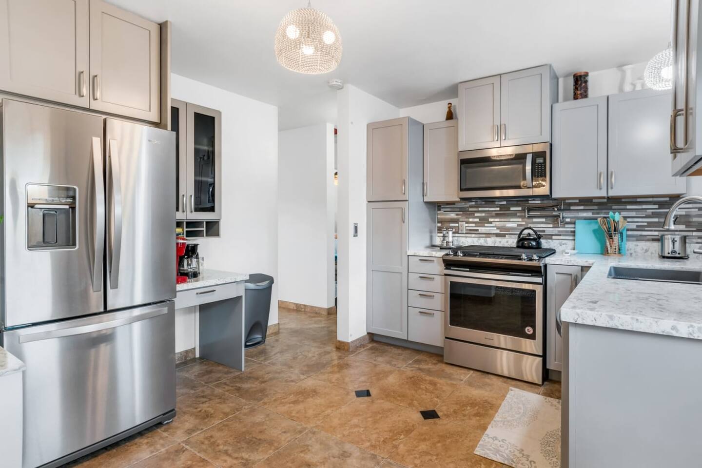 Our smart home features an e-lock for easy self check-in. We have fast wifi, but do keep in mind, we are still remote and speeds may vary. Our kitchen is fully stocked with all of your cooking necessities including a microwave, toaster oven, pots/pans, cookware, baking sheets, mixing bowls, wine/bottle opener, Keurig & drip coffee makers with coffee provided, spices, filtered drinking water, and an ice maker.