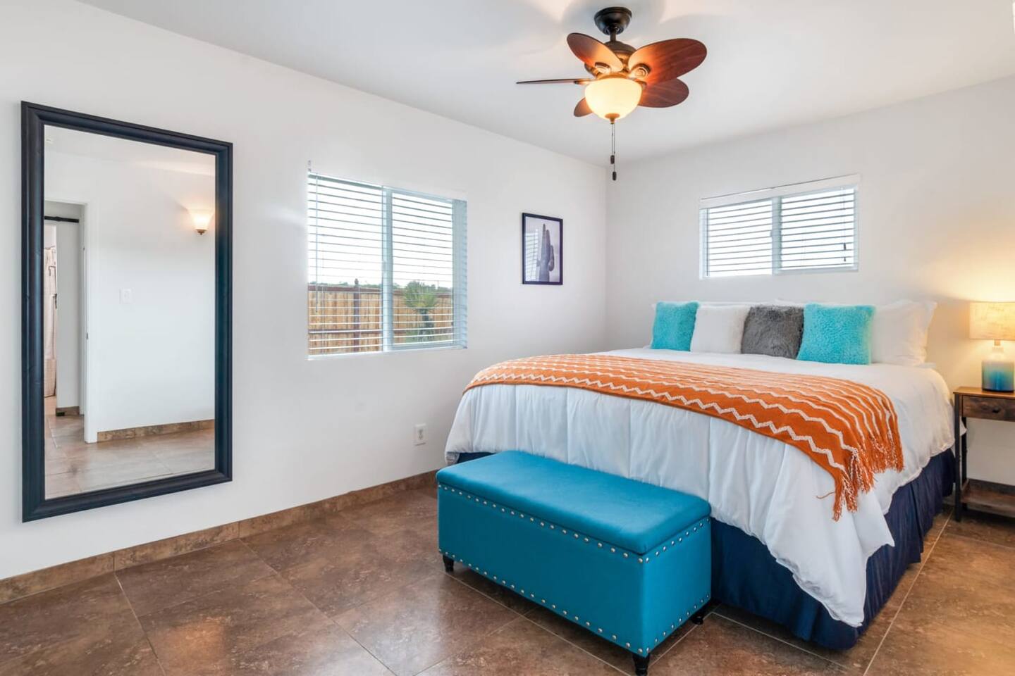 Bedroom 1 (Primary Room) — King size bed with french doors to outdoor space.
